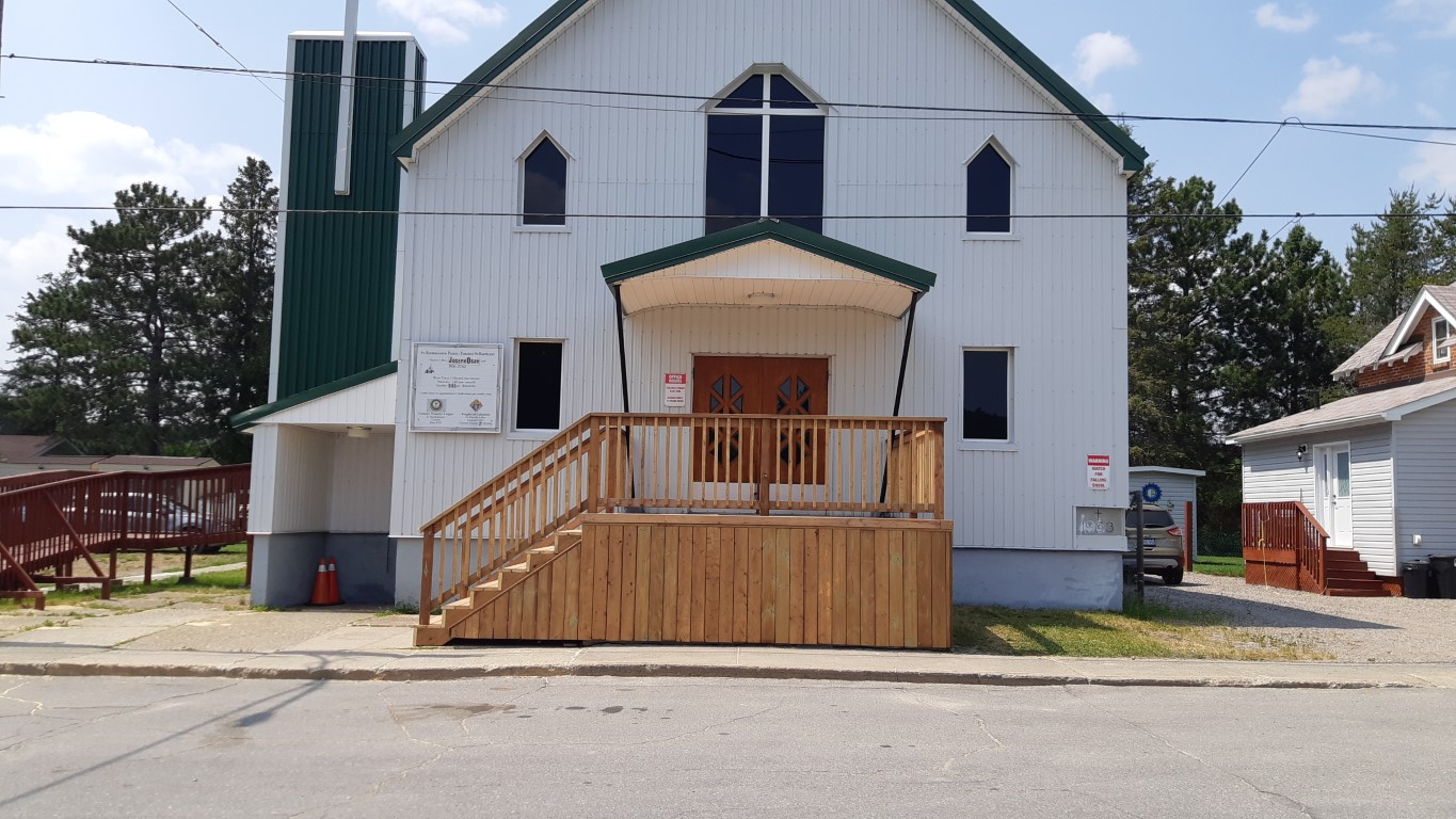 Le conseil Levack des Chevaliers de Colomb étudie le coût du remplacement des escaliers par un ensemble préfabriqué d’escaliers en béton. J’espère que j’aurai bientôt des chiffres solides à communiquer. Avant la pandémie, on estimait à environ 40 000 dollars le coût du remplacement des escaliers par du béton coulé.